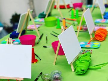 Table set-up, chairs & decor, face mask & cucumber eye treatment.
